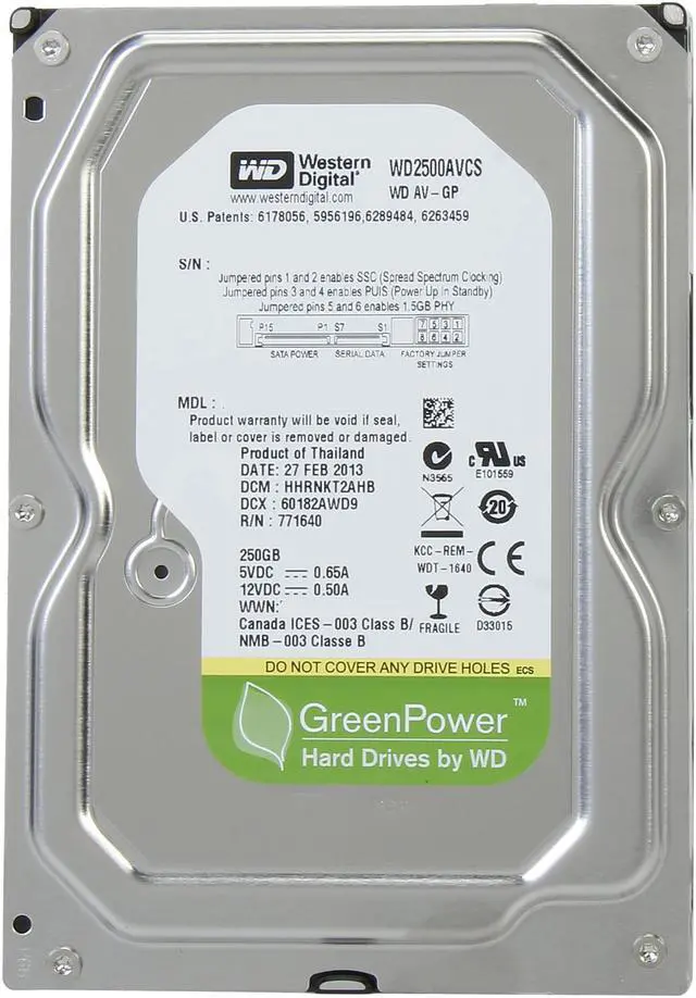 Western Digital - Av-Gp 250Gb 5400Rpm(Intellipower) Sata-Ii 16Mb Buffer 3.5Inch Internal Hard Disk Drive (Wd2500Avcs).Key Features:Capacity: 250 GbInterface: Serial Ata-300(Sata-Ii)Spindle Speed: 5400 Rpm (Intellipow