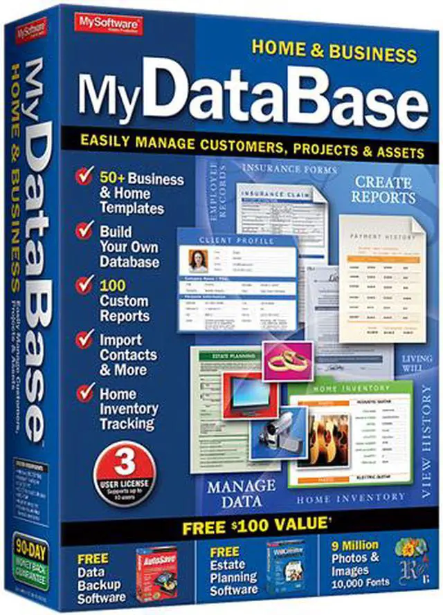 | Feature | Getting Started is As Easy as 1-2-3 1. Get Started Quickly with 50+ customizable home and database templates or create your own. 2. Gather Data Easily Import popular database files including Microsoft Access, Excel, Outlook, and more. 3. Access Information Instantly Filter data to find single contacts or large data sets. Perform calculations, view totals and print reports. 50+ Database Templates or Build Your Own Organize & Manage Your Customers, Vendors & Contacts MyDatabase lets you import data from the most popular databases including Microsoft Access, Excel, and Outlook. Keep your customers, clients, friends and family informed with personalized emails. MyDatabase pulls your email contact list directly from your database. - Search & find your contacts quickly - Easily create address lists - Track your communications - Send personalized emails Built-in Database Sharing Access the same database file simultaneously. Your team can view, update, and edit the file easily. With MyDatabase Home & Business, sharing information is easy, no costly network specialist or consultant is required. Organize & Track Your Possessions Create a detailed record and track your valuables including furnishings, appliances, electronics, jewelry, vehicles, clothing or movies and music collections with MyDatabase. Expedite your insurance claims and be prepared for any emergency. - Add photos and images to your forms - Scan and attach price tags, receipts, warranties and appraisals to your forms - Print summary reports to send to your insurance agent - Back up your records automatically for added protection Get More from Your Data with Customized Reports Make better business and personal decisions with a broad range of reports. From expenses, inventory, and customer history, to address lists, value of assets, insurance detail, and more, MyDatabase makes it easy to create polished and professional reports to help you gain valuable insight int |
