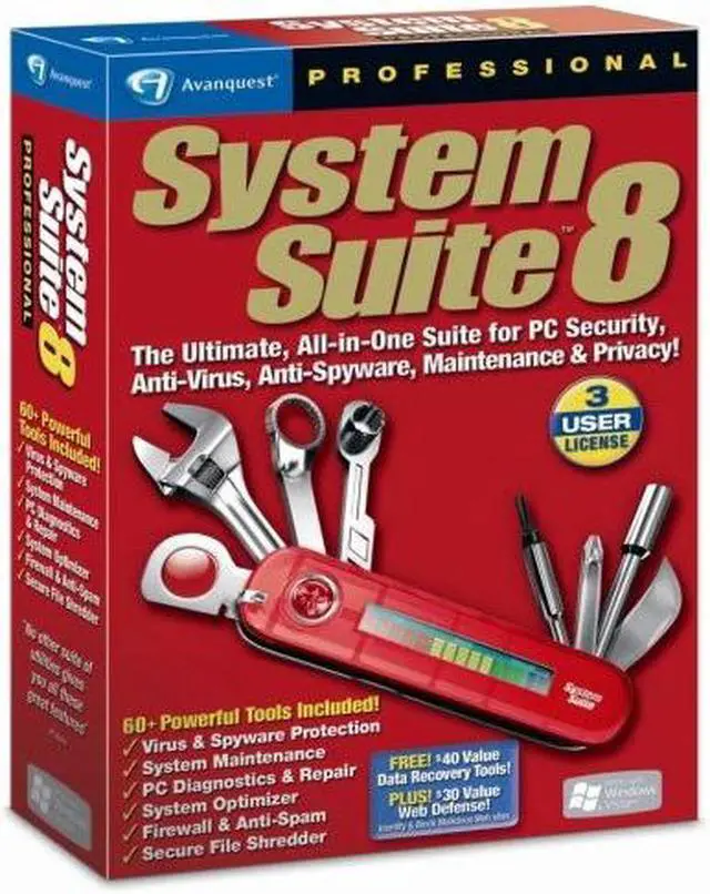 | Feature | 60 + Powerful Tools Included! Virus & Spyware Protection Fix Windows Problems Diagnostics & Repair System Optimizer Firewall & Anti-Spam Secure File Shredder Disaster Recovery Tools |