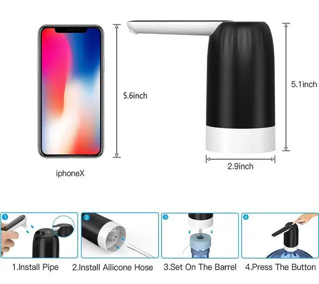 Safe MaterialThe silicone hose is made of food-grade material, you can safely insert it into drinking water. Water dispenser is made of an insulated high-density ABS plastic shell suitable material for water pump.