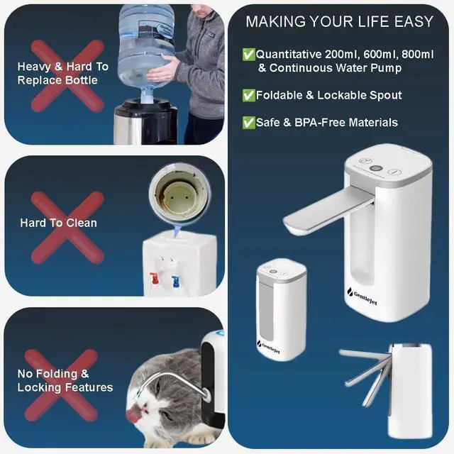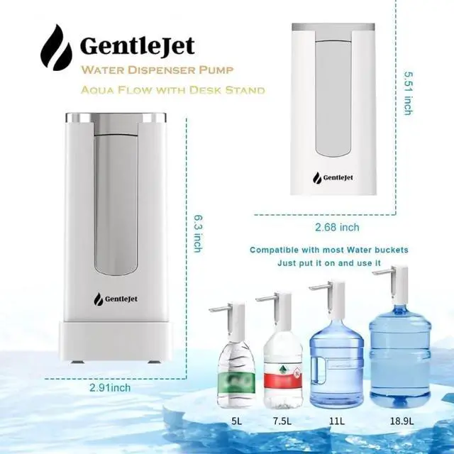 The GentleJet Automatic Water Dispenser Pump suits any setup. Monitor battery with the digital display and enjoy efficient Type-C USB charging. Compact and foldable, it’s ideal for home, office, or outdoors. Now with dual-use for both countertop and bottle.