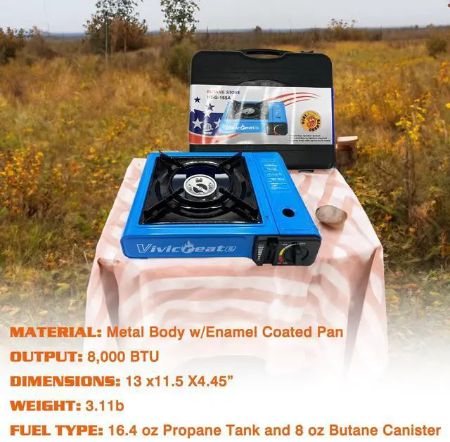 1. High-Powered 7000 BTU Burner for Efficient Cooking This portable butane stove delivers 8500 BTU of heat output, ensuring fast and even cooking whether youre camping, picnicking, or enjoying an outdoor BBQ. Perfect for boiling, simmering, and grilling