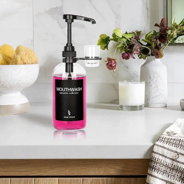 ALL-IN-ONE GLASS MOUTHWASH SET—ELEVATES ORAL CARE WITH SLEEK ELEGANCE.