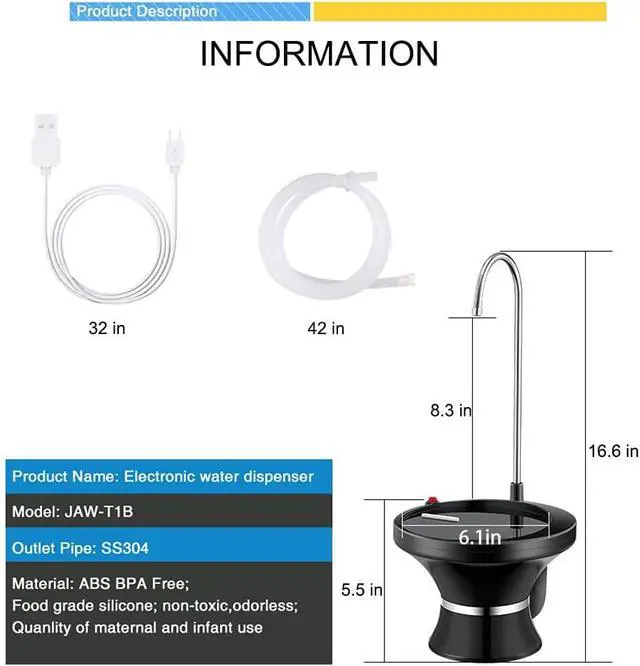 5.The tray is 6.1in (15cm) and the faucet height is 8.3 (21cm); please choose water containers that can be used for this range of cups, bottles, flasks and other water containers.