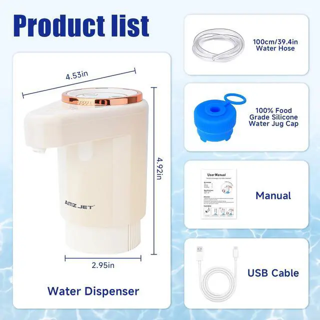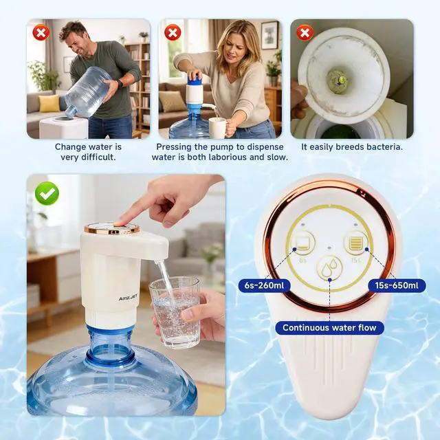 Upgraded Dual Pump System Faster & More Powerful FlowUnlike single-pump models, Amz Jet water dispenser features an upgraded dual pump system that delivers stronger, smoother and more continuous water flow. Fill cups and bottles faster with less waitingideal for daily family and office use