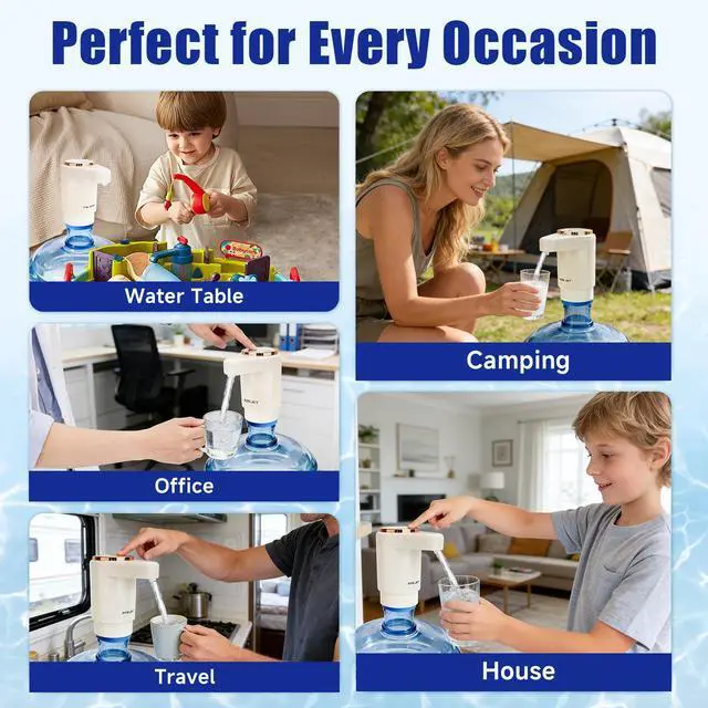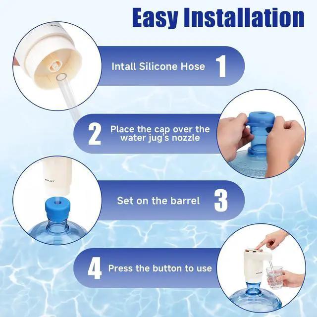 USB Rechargeable Water Pump Long-Lasting UseBuilt with a 1200mAh rechargeable battery, this electric water pump can last up to 8 full 5-gallon bottles on a single charge, offering reliable performance for daily drinking needs