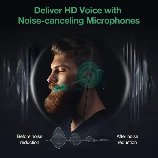 The microphone boom arm of the headsets can be freely rotated up and down 330°, and you can easily adjust the position of the microphone without being breaking.