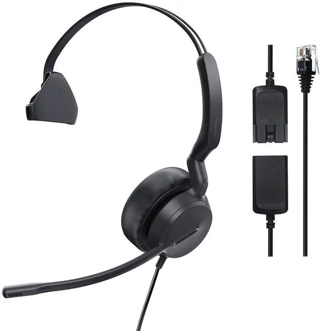 Phone Headsets for Office Phones YHS36 E2 QD to RJ9 Wired Headset Compatible with Poly Snom Phones Desk Landline VoIP Headset with Microphone -Mono/81g/ 2.1 m Cable