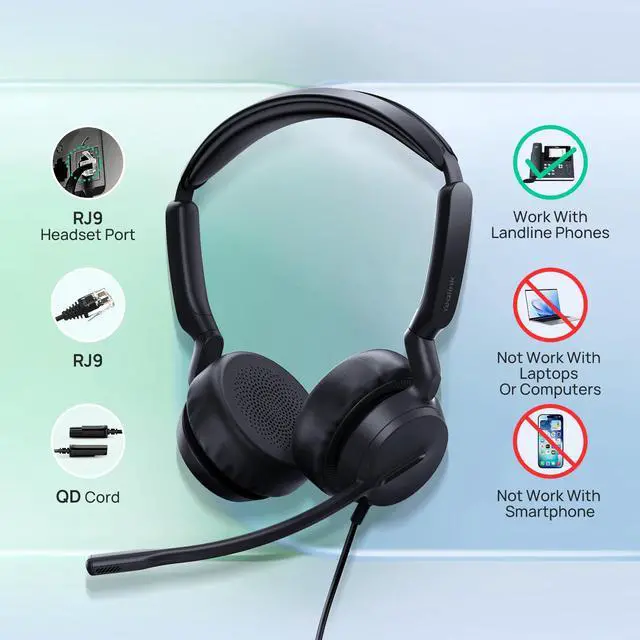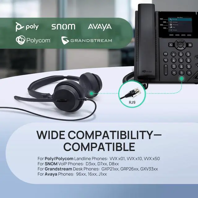 Phone Headsets for Office Phones YHS36 E2 QD to RJ9 Wired Headset Compatible with Poly Snom Phones Desk Landline VoIP Headset with Microphone -Mono/81g/2.1m Cable