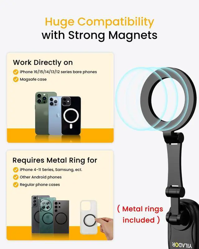 Our magnetic mount has been rigorously tested and features a very strong magnetic force that can securely hold up to 8 pounds, ensuring your phone stays firmly in place. Additionally, we provide an anti-loss strap. We recommend attaching the strap to your phone case and the mount for extra security. This dual protection design ensures your device stays safe and stable in any situation.