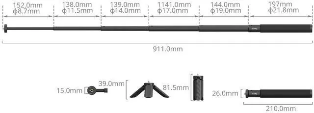 | Tripod, Mount Adapter | Selfie Stick, Remote, Cable | Selfie Stick, Stake, Strap | Stick, Mount, Clamp, Strap | Stand, Quick Release Adapter | Tripod | Tripod |