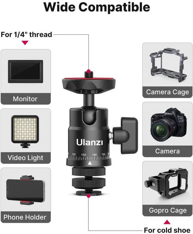 | Mounting Type | Suction Cup Mount | Tripod, 1/4" thread | 1/4" Standard Screw + Cold Shoe Mount Interface | 1/4" thread, Bar Mount,Clamp Mount | Tripod | Tilt head |