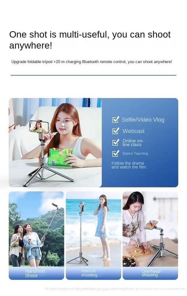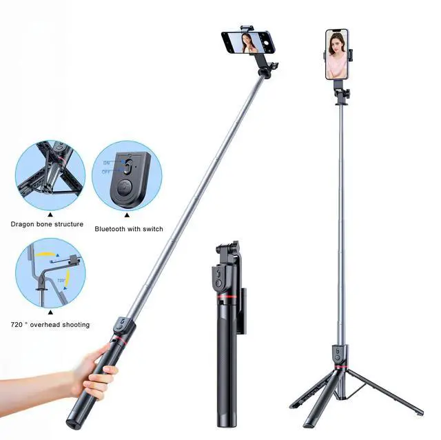 [All in 1 Selfie Stick Tripod]: This extendable selfie stick tripod is perfect for photography, FaceTime, business, and live broadcasting. It features a handheld stick with collapsible legs that quickly convert it into a tripod. Easily switch between Selfie Stick Mode and Tripod Mode to fit your needs