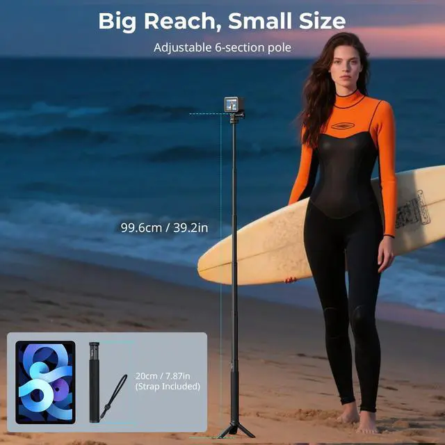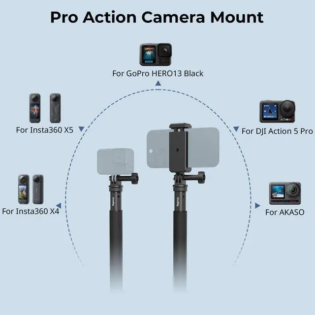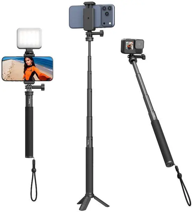 | Tripod, Mount Adapter | Selfie Stick, Remote, Cable | Selfie Stick, Stake, Strap | Stick, Mount, Clamp, Strap | Stand, Quick Release Adapter | Tripod | Tripod |