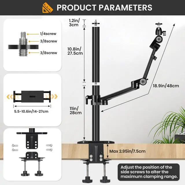 | DSLR Camera, Ring Light, Phone | DSLR Camera, Ring Light, Phone | DSLR Camera, Ring Light, Phone | Stand, Light, Tripod, Camera | LED lights, Camera, phone | 1.97"-3.15" wide Smartphone | Camera, Ring Light, Phone |