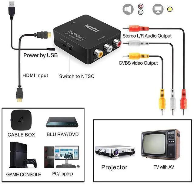 HDMI to RCA/AV Converter Adapter