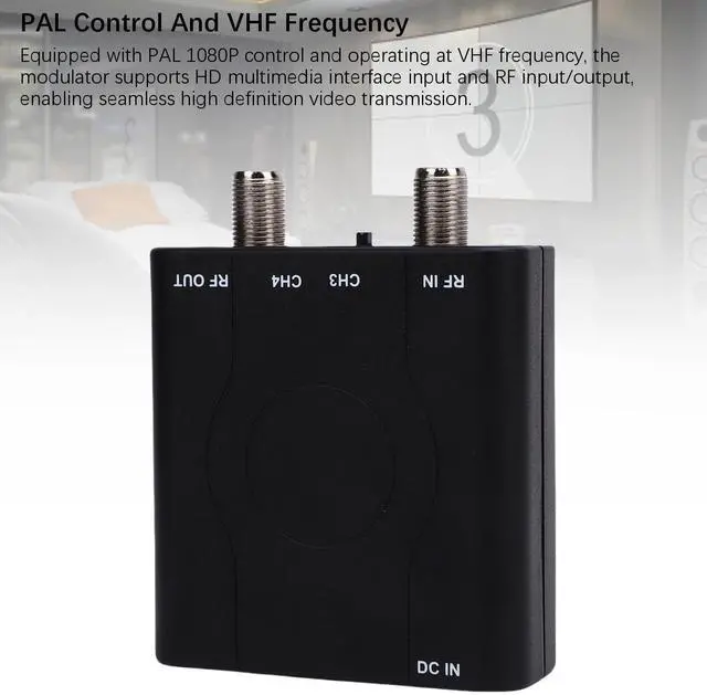 PAL Control And VHF Frequency: Equipped with PAL 1080P control and operating at VHF frequency, the modulator supports HDMI interface input and RF input/output, enabling seamless high definition video .