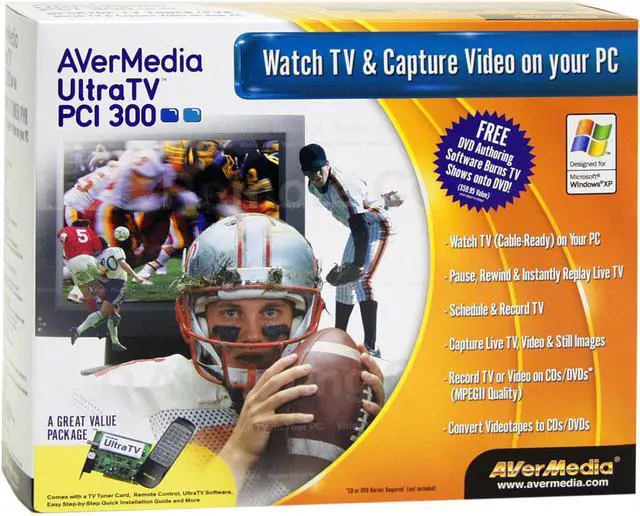 | Features | Watch TV on your PC Fully Resizable TV Window (up to Full Screen) Full band Air & Cable TV Tuner Supports color adjustment Closed Caption for NTSC Parental Channel Lockout 16-Channel Preview Auto Scan and Full Channel Scan Album feature for still image capture Save image to BMP, JPG, TIF, PCX format (up to 1600 x 1200) |