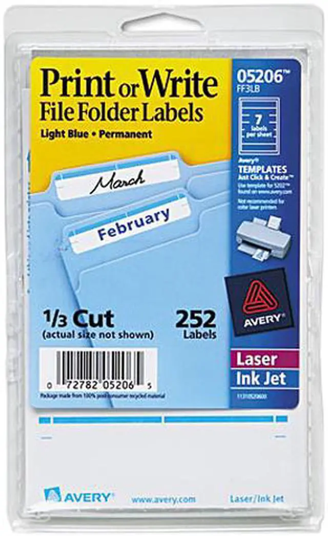 Avery 05206 Print or Write File Folder Labels, 11/16 x 3-7/16, WE/Light Blue Bar, 252/Pack