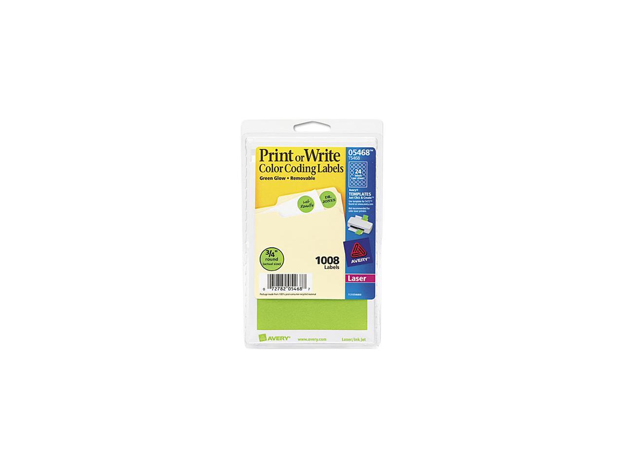 Avery 05468 Print or Write Removable Color-Coding Labels, 3/4in dia, Neon Green, 1008/Pack