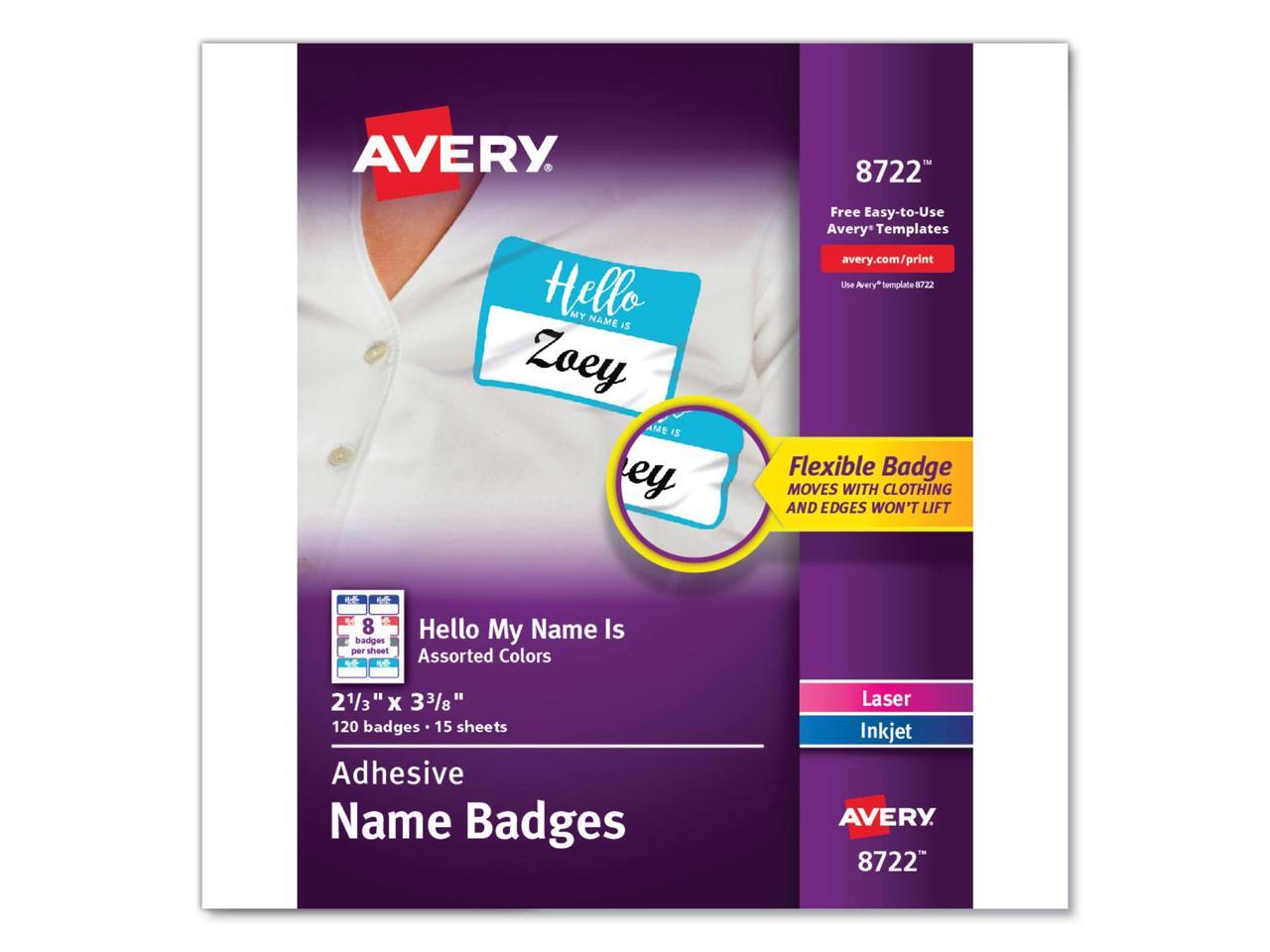 Avery 08722 Flexible Adhesive Name Badge Labels, 3 3/8" x 2 1/3", Assorted, 120/PK