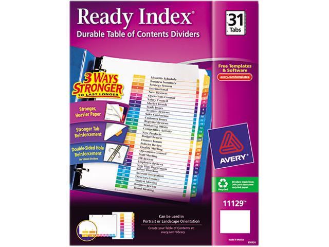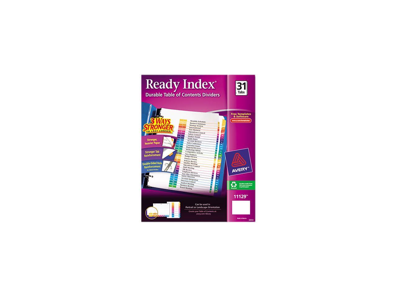 Avery Ready Index 31 Number Dividers, Customizable Table of Contents, Classic Multicolor Tabs, 1 Set (11129)
