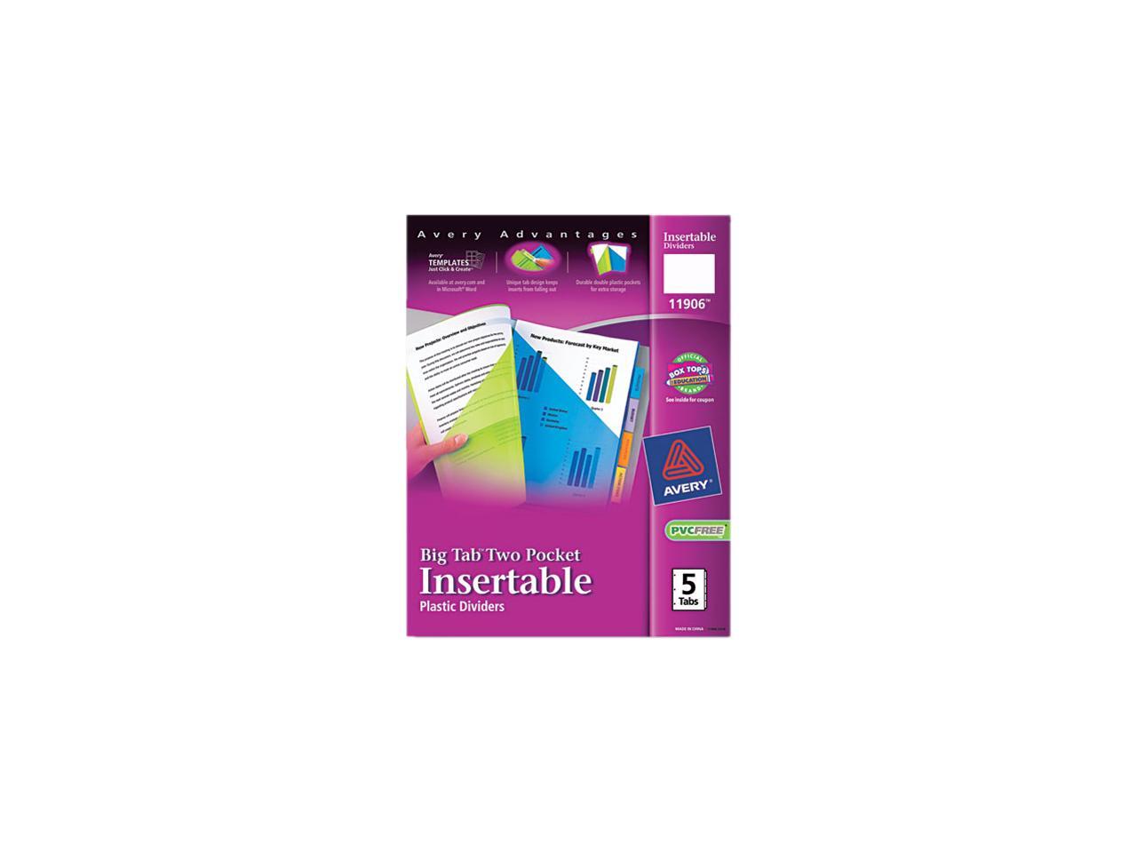 Avery 11906 WorkSaver Big Tab Plastic Dividers, Two Slash Pockets, 5-Tab, Assorted, 1 Pack