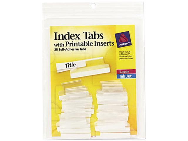 Avery 16221 Self-Adhesive Tabs with White Printable Inserts, One Inch, Clear Tab, 25/Pack