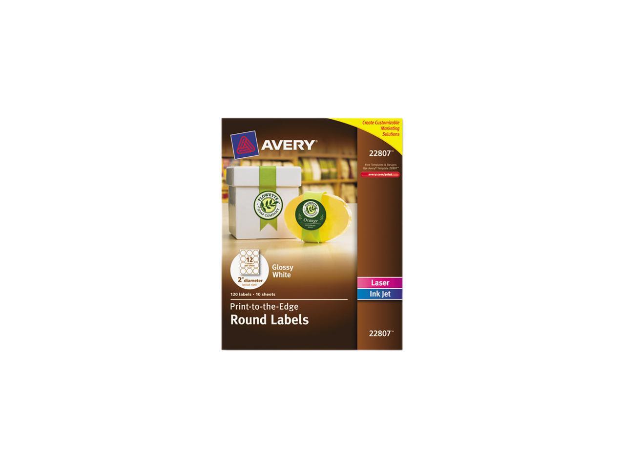 Avery 22807 Easy Peel Print-to-the-Edge Label 2" Diameter - 120 / Pack - Circle - 12/Sheet - Laser, Inkjet - White