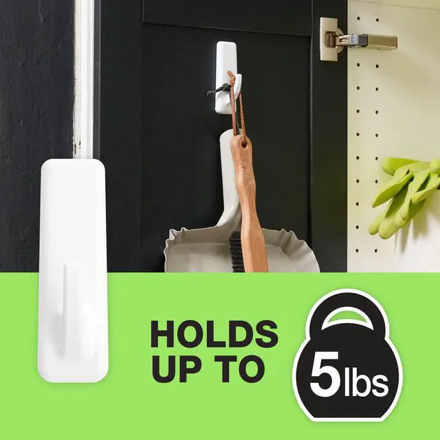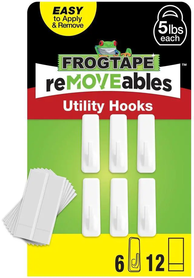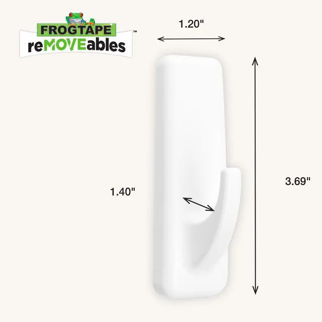 HOLDS FIVE POUNDS: Each FrogTape reMOVEables Large White Utility Hook holds up to five pounds; Utility hook can hold a variety of large items such as backpacks, brooms, cords and more