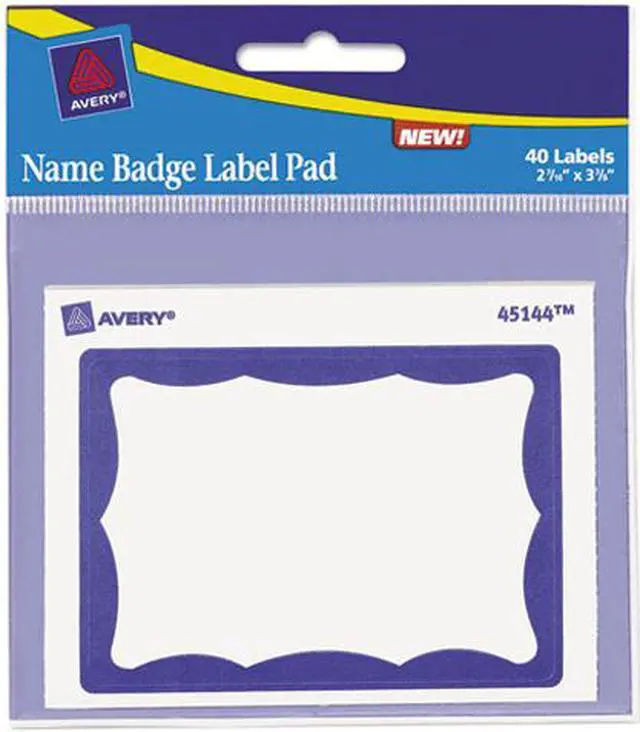 Classic name badges come in an easy-to-use pad so you can take them anywhere. Simply write, peel, and stick. Compact design allows easy storage and accessibility. Name badges adhere firmly, remove easily, and are suitable for most fabrics. Badges are not recommended for use on vinyl, plastic, leather, suede, velvet, corduroy, silk, or other delicate fabrics. Each badge has a full-colored border. Each pad has 40 sheets.
