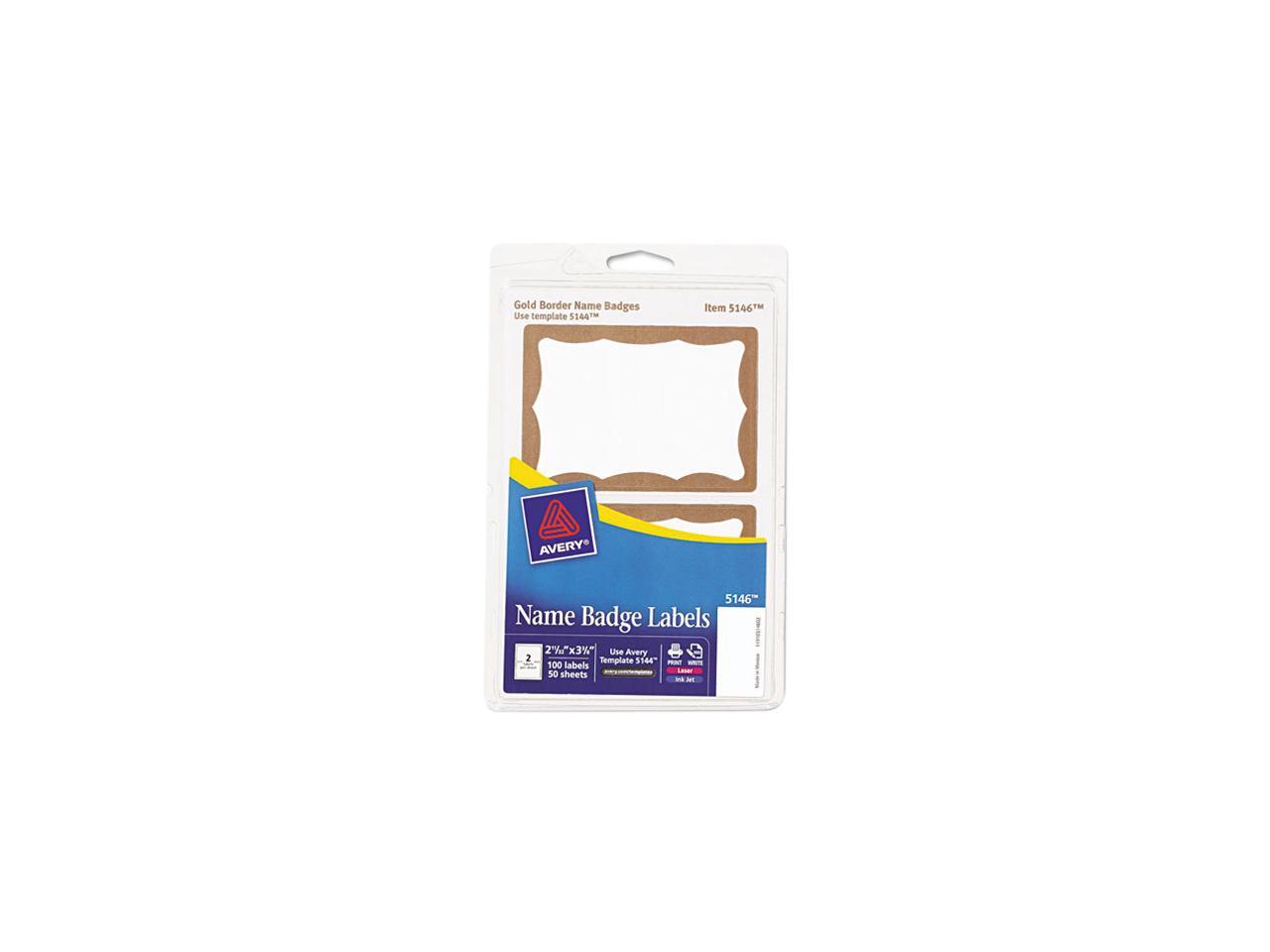 Avery 5146 Print/Write Self-Adhesive Name Badges, 2-11/32 x 3-3/8, Gold, 100/Pack