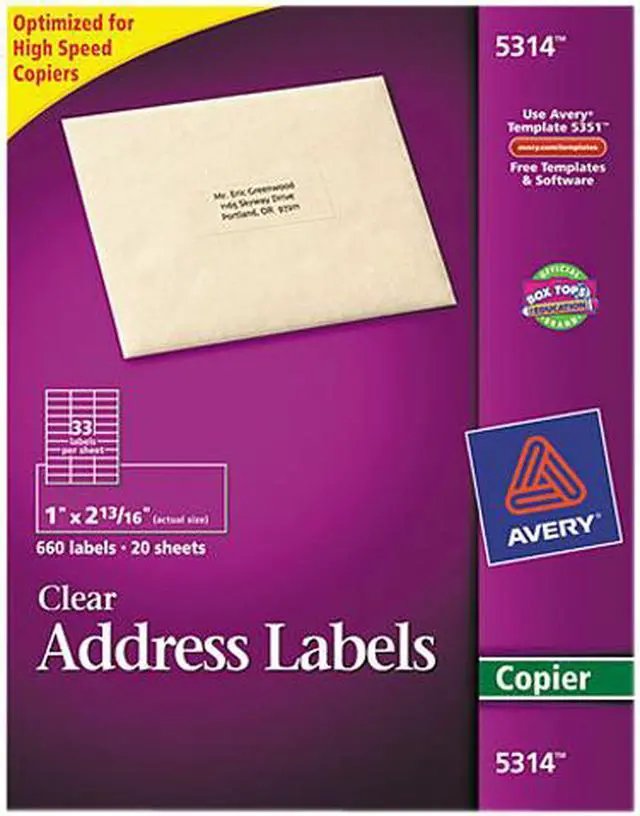 Avery 5314 Self-Adhesive Mailing Labels for Copiers, 1 x 2-13/16, Clear, 660/Pack