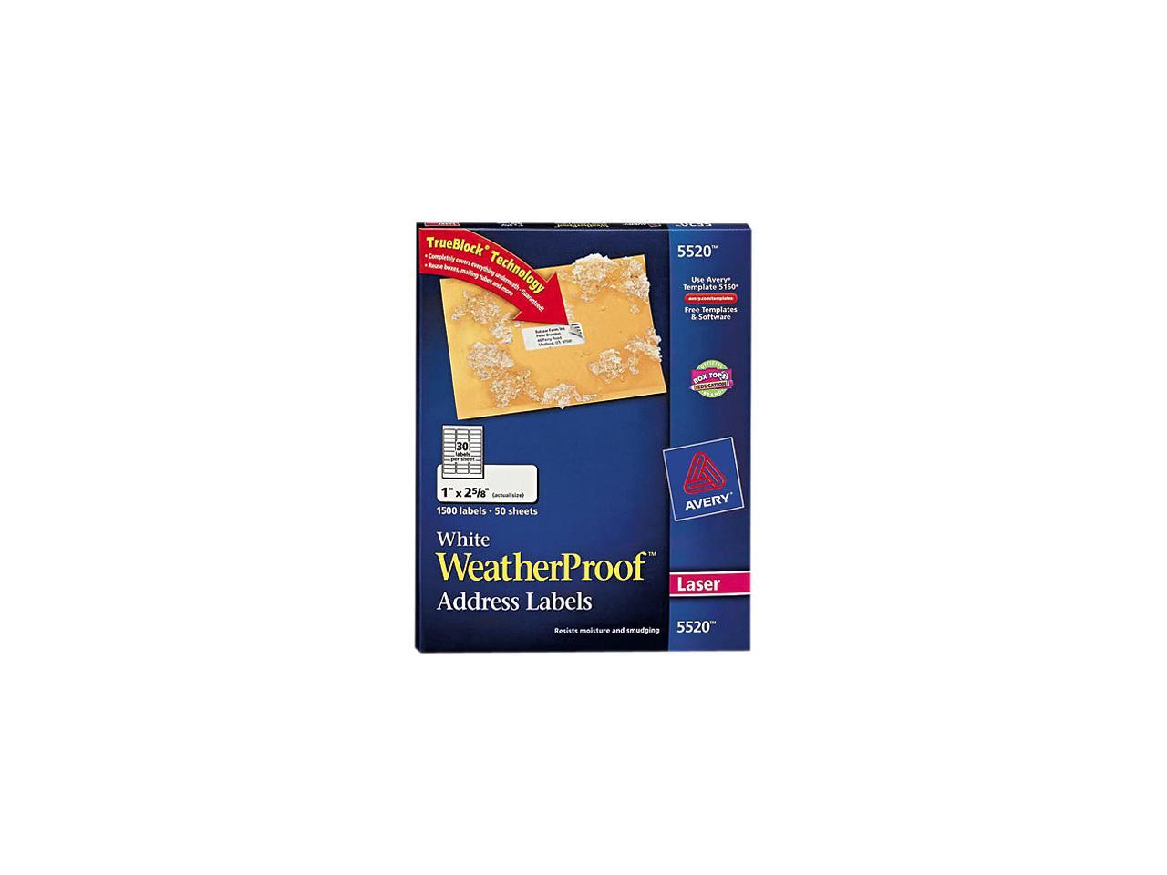 Avery WeatherProof Mailing Labels, TrueBlock Technology, Permanent Adhesive, 1" x 2-5/8", 1,500 Labels (5520)