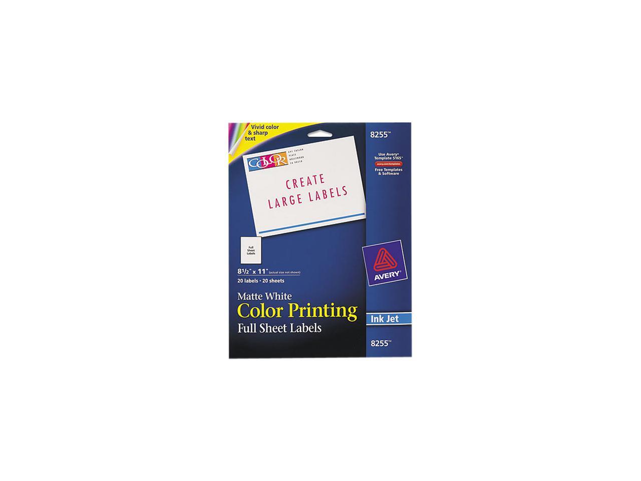 Avery Color Printing Labels, Permanent Adhesive, Matte, 8.50" x 11.00", 20 Labels (8255)