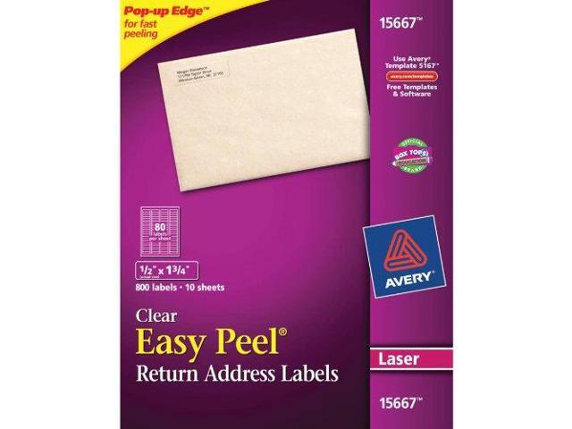 Easy Peel Mailing Labels For Laser Printers, 1/2 X 1-3/4, Clear, 800/P