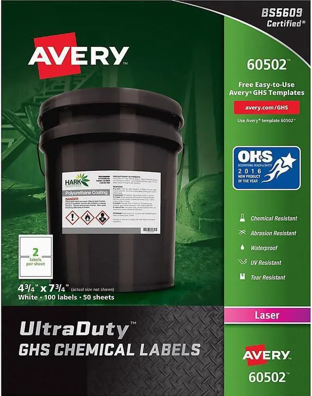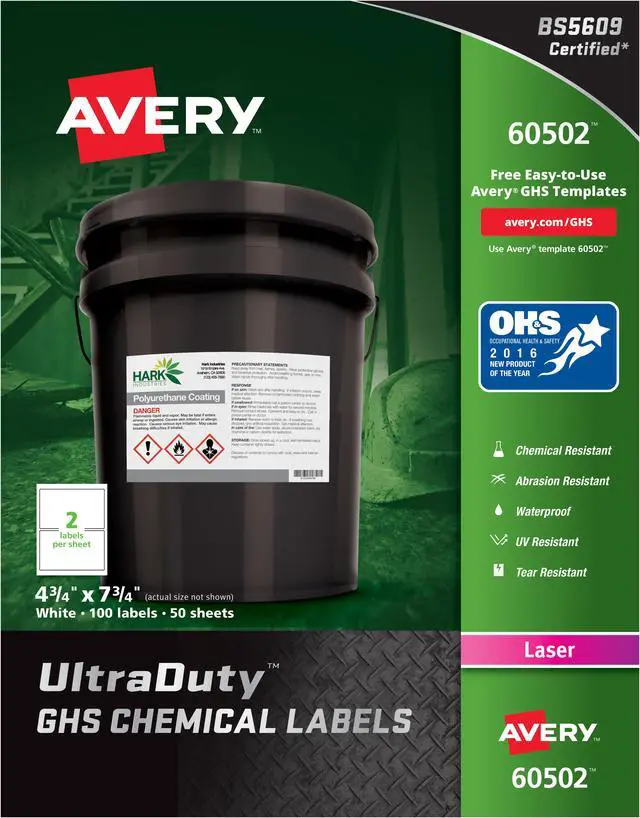 Avery UltraDuty GHS Chemical Waterproof & UV Resistant Labels
