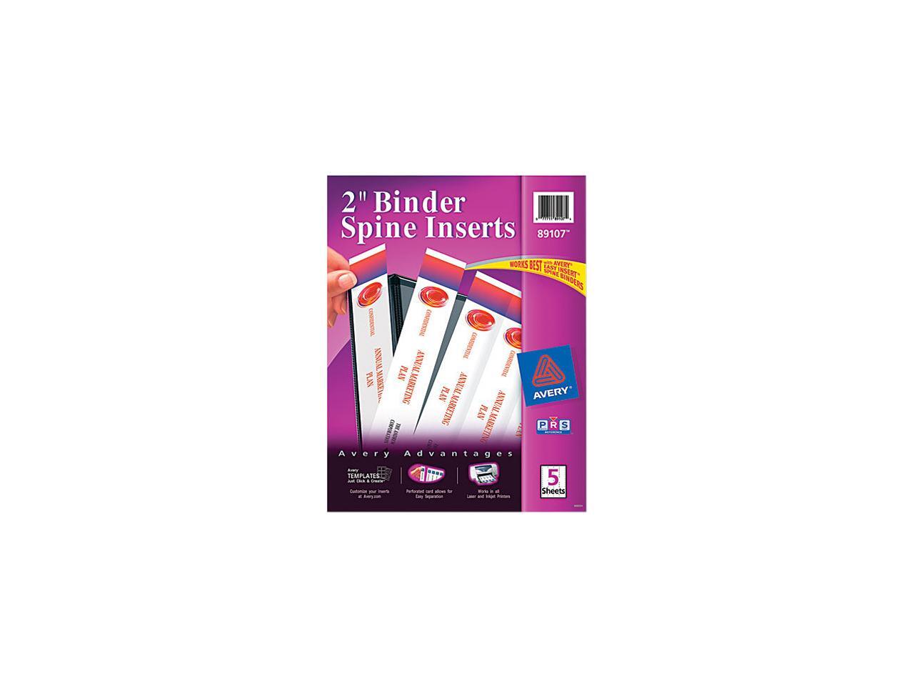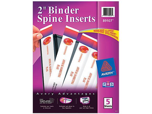 Avery Binder Spine Inserts 2" Spine Width 4 Inserts/Sheet 5 Sheets/Pack 89107