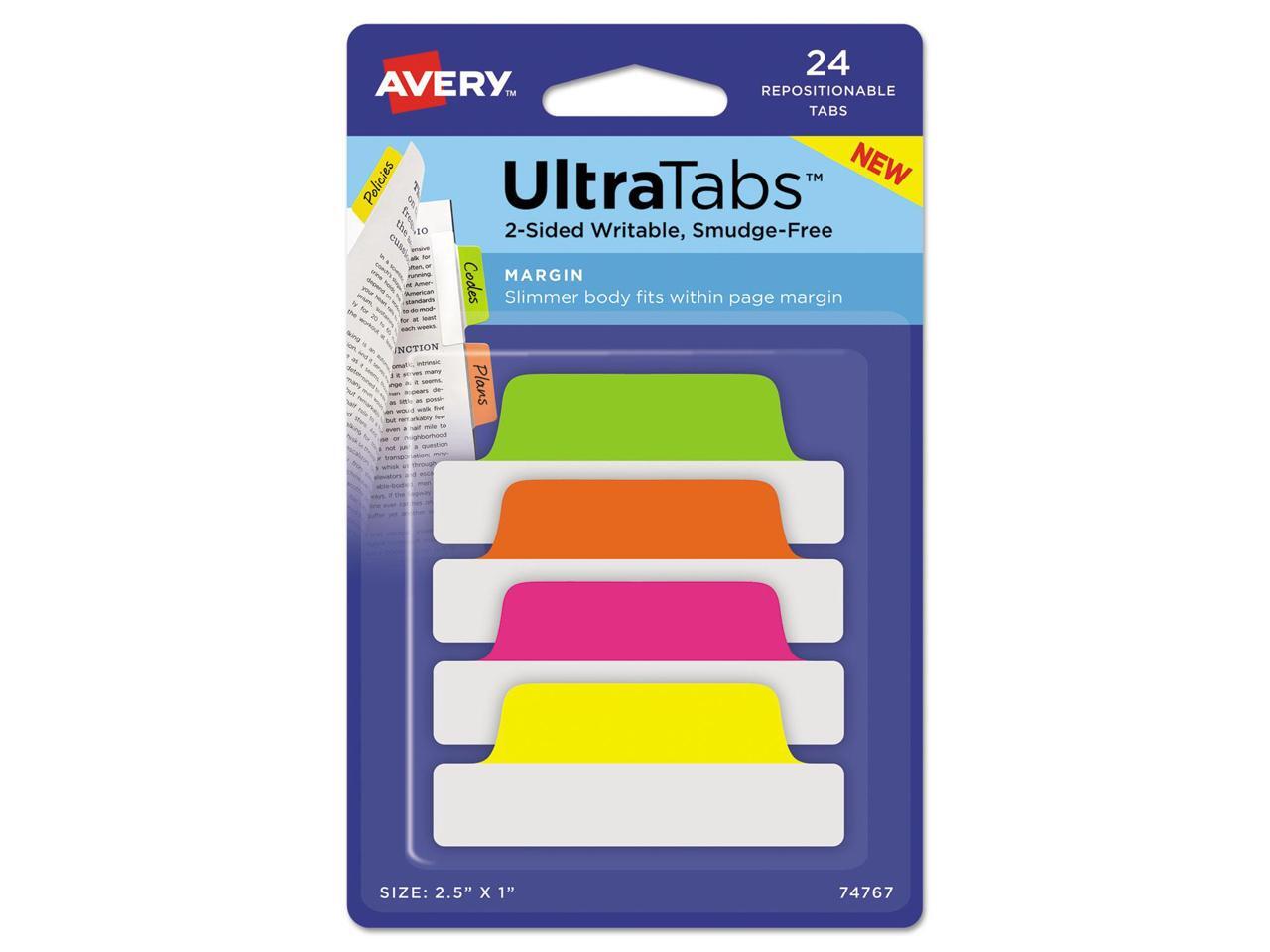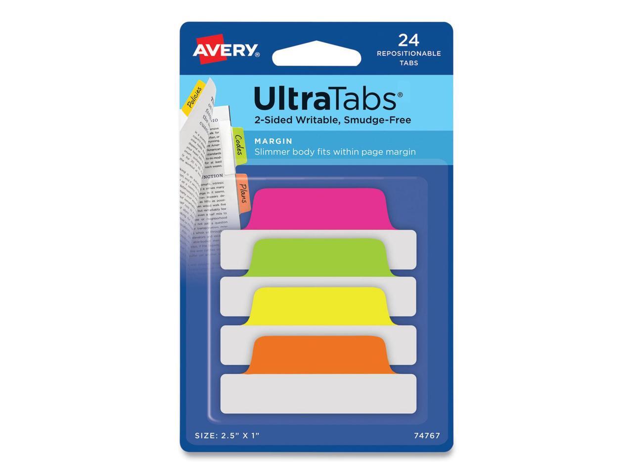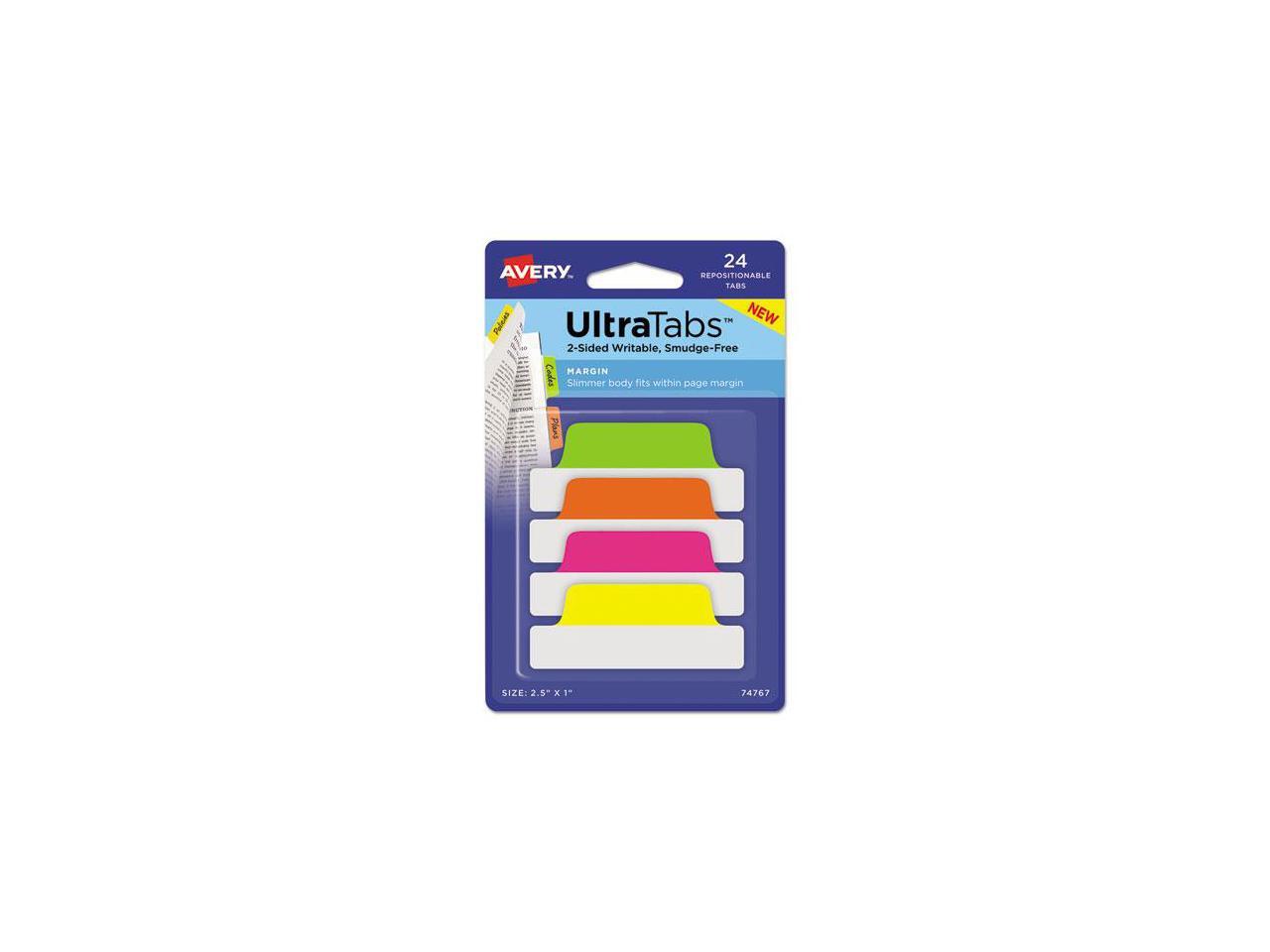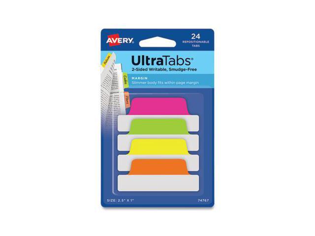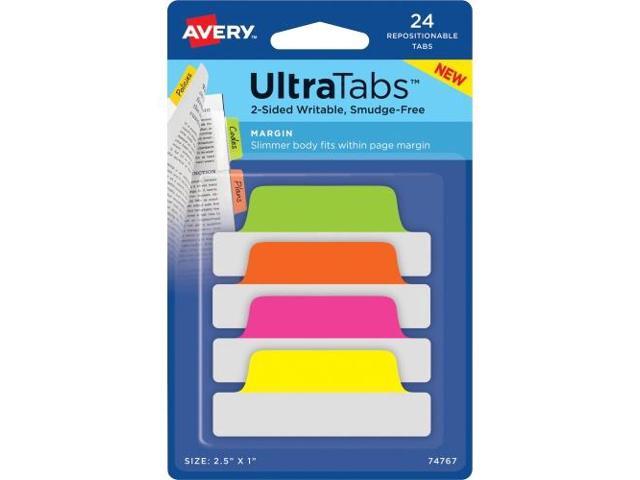 Avery Ultra Tabs Repositionable Tabs 2.5 x 1 Neon:Green Orange Pink Yellow 24/Pk