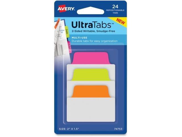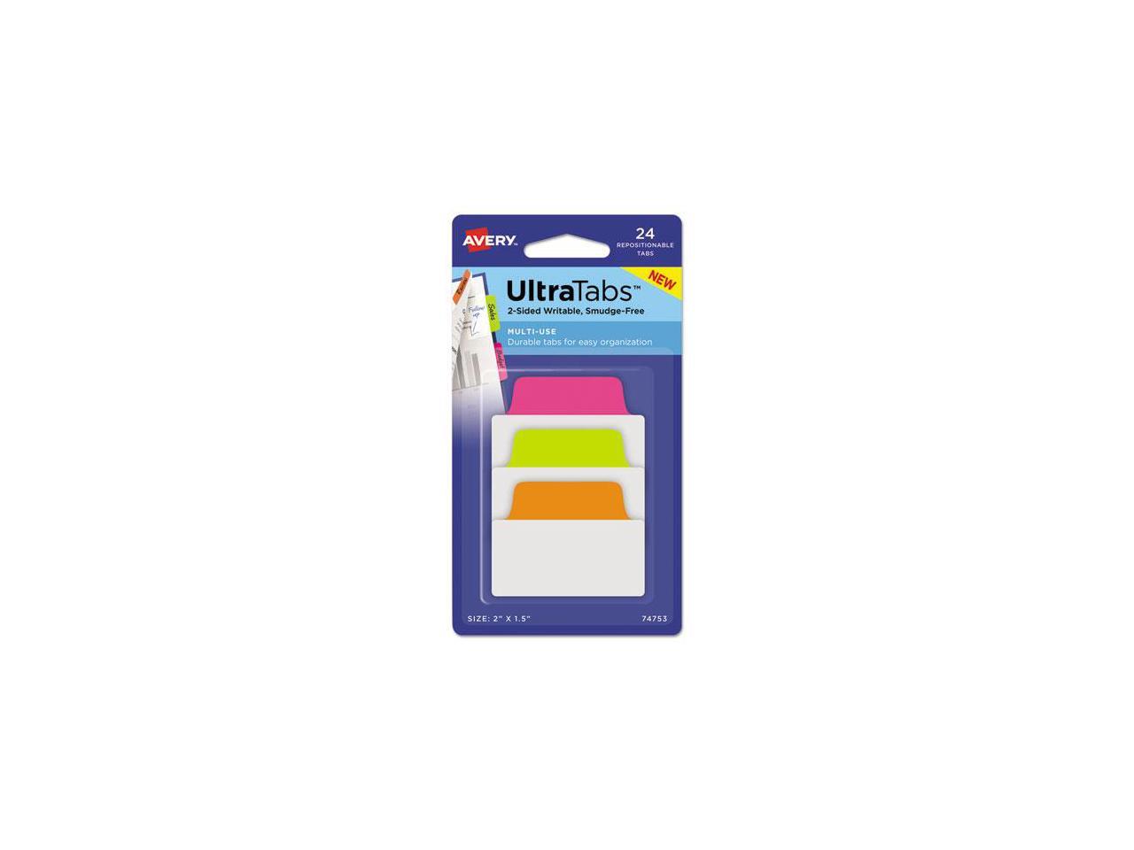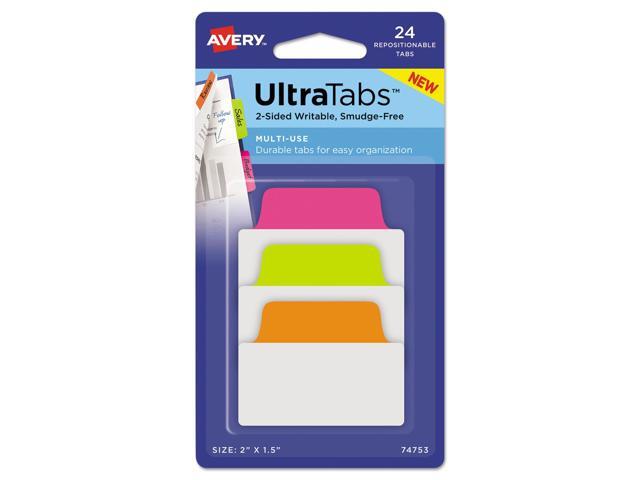 Avery Ultra Tabs Repositionable Tabs 2 x 1 1/2 Neon: Green Orange Pink 24/Pack