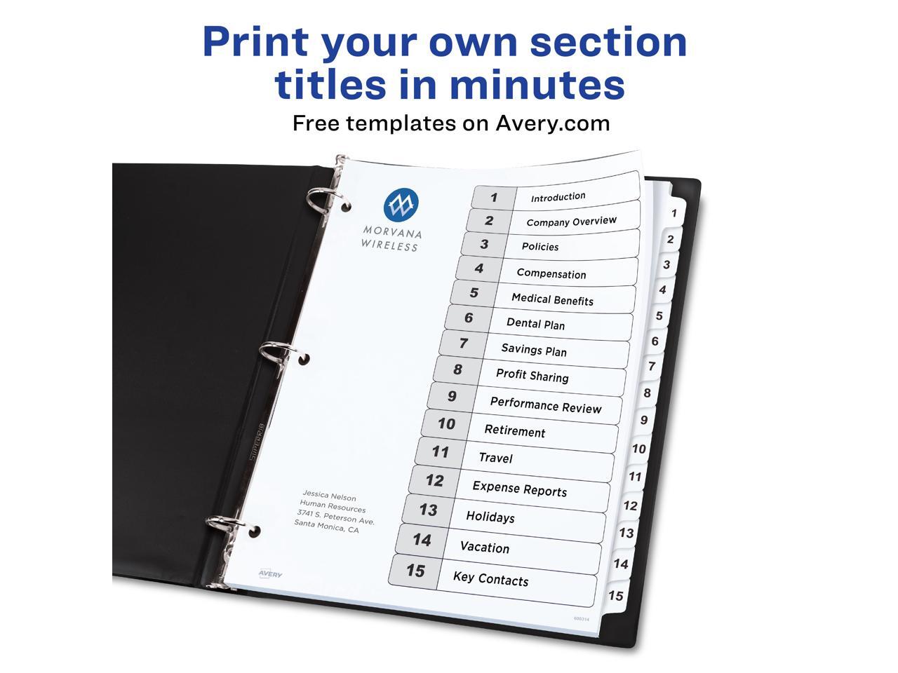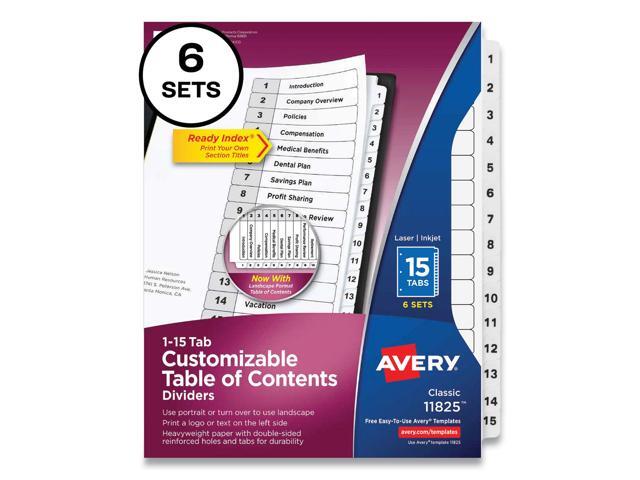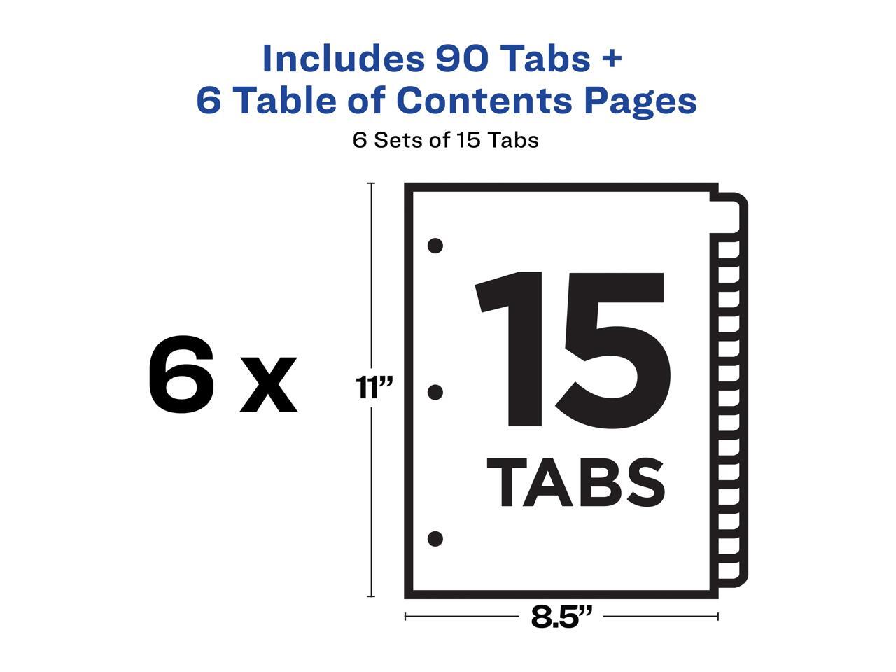 Avery Ready Index 15 Tab Dividers, Customizable TOC, 6 Sets (11825)