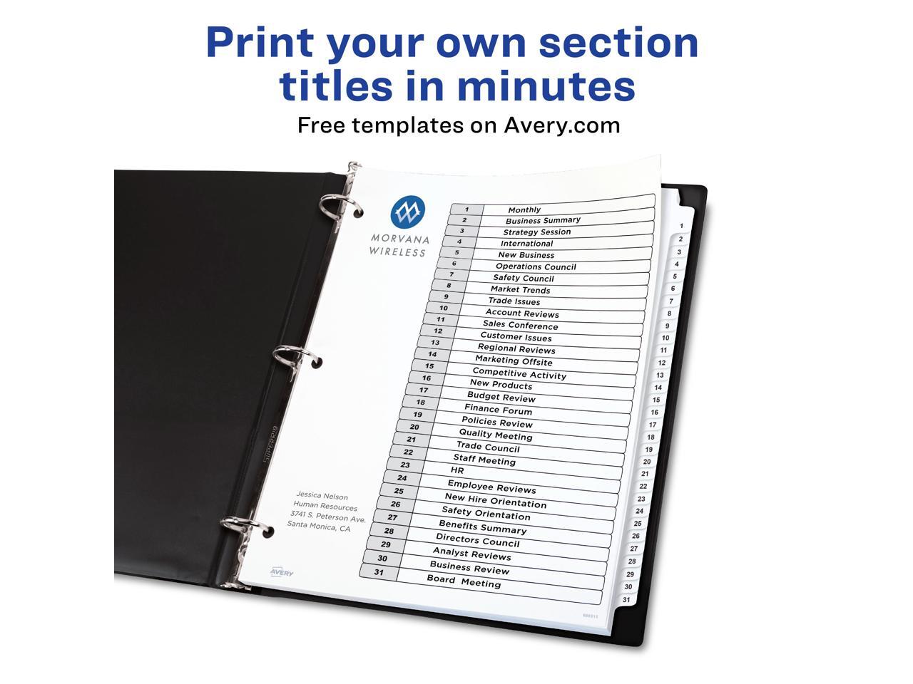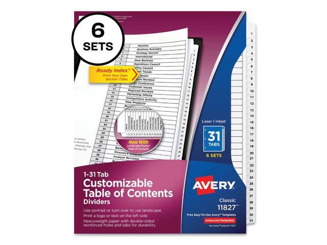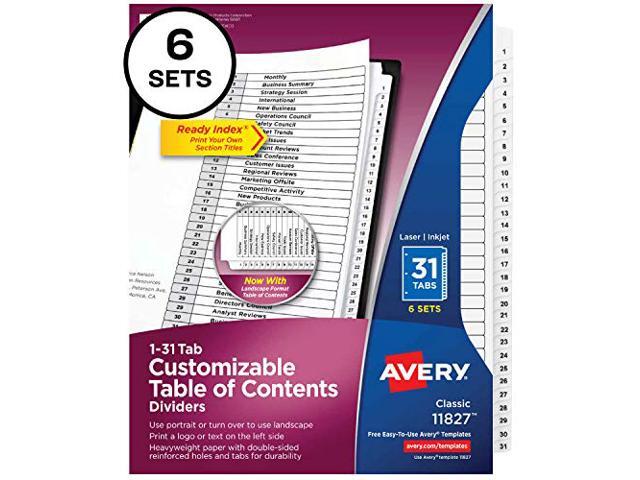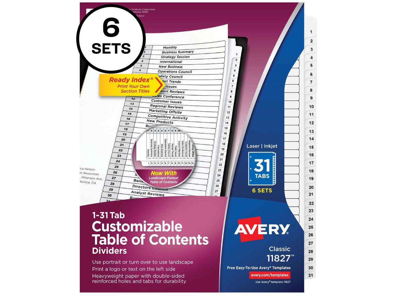 Avery Ready Index 31 Tab Dividers, Customizable TOC, 6 Sets (11827)