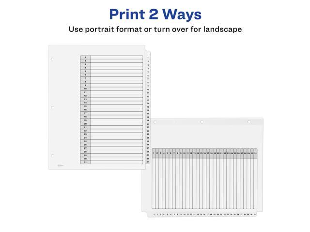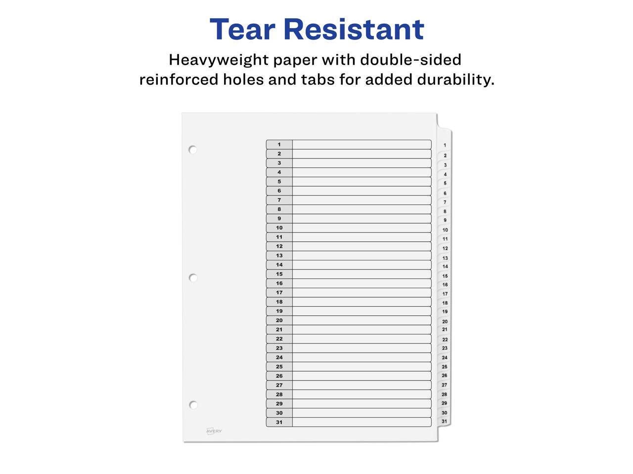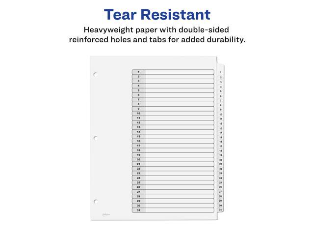- 6 sets of 31 dividers are included with sturdy tab and hole reinforcements on both sides
