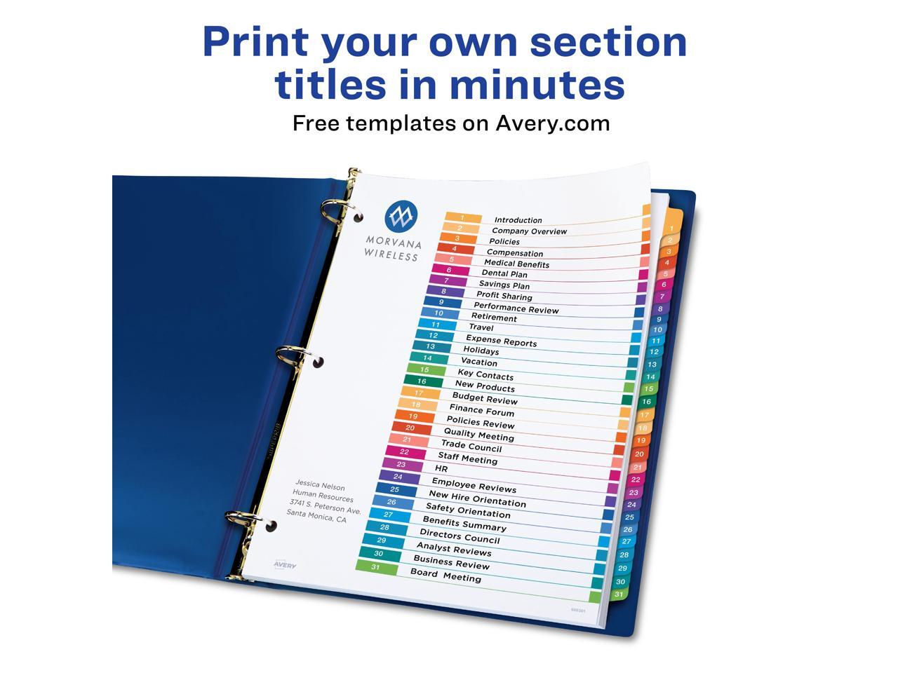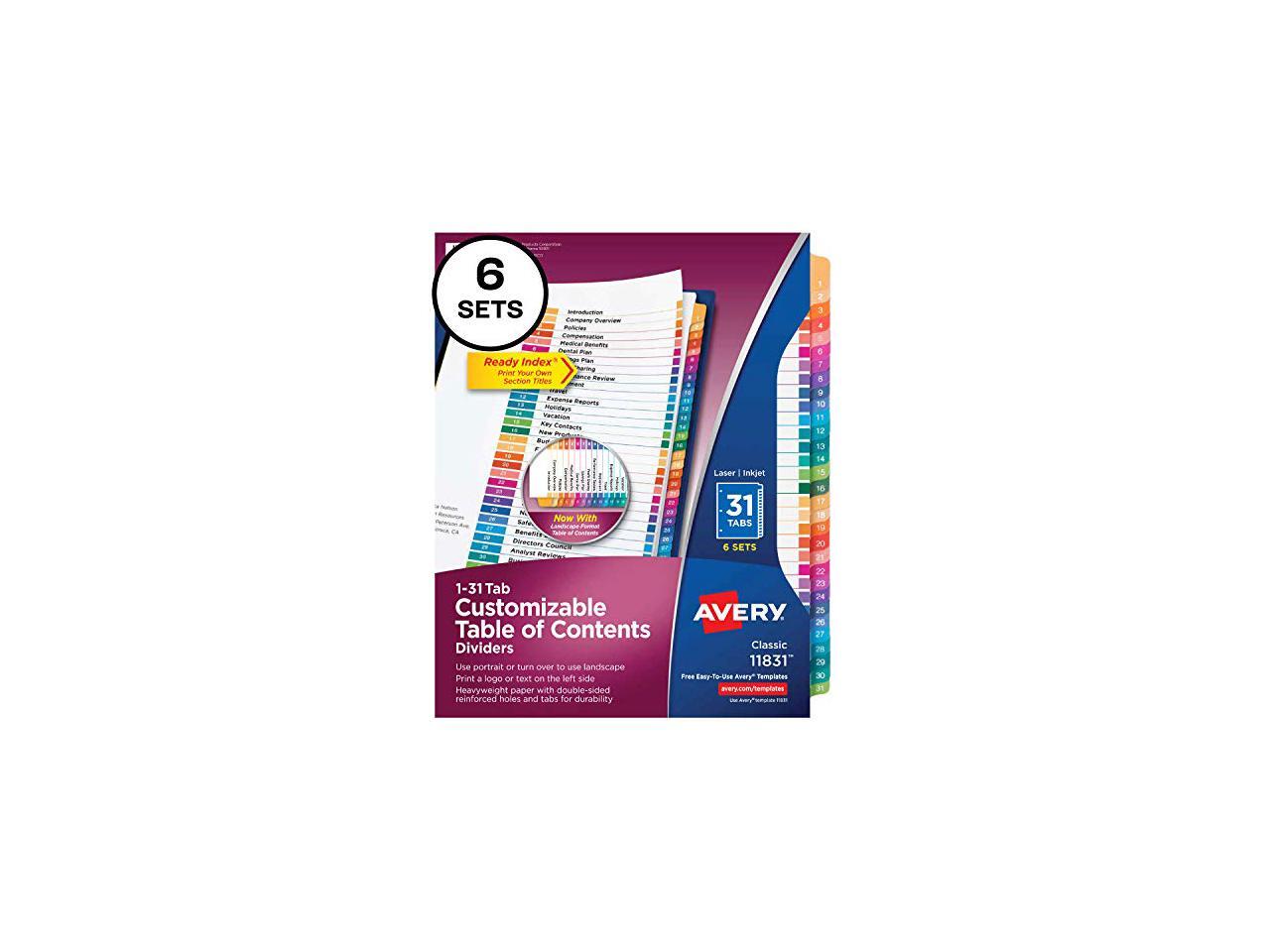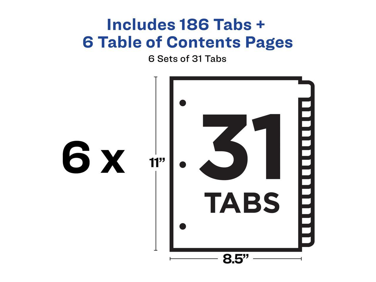 Avery Ready Index 31 Tab Dividers, Customizable TOC, 6 Sets (11831)