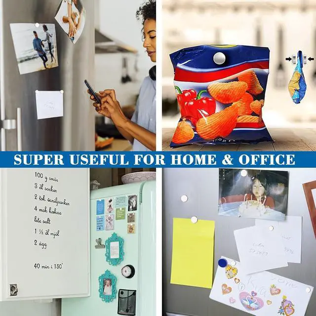 The tiny magnets can be used as refrigerator magnets, whiteboard magnets, billboard magnets and everything have magnetic, also can help storage things.It’s super useful for home and office.