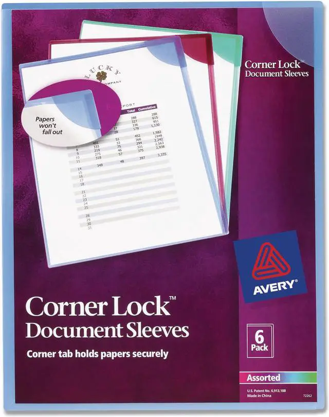 Avery Corner Lock Document Sleeves Letter Polypropylene Assorted 6/Pack 72262