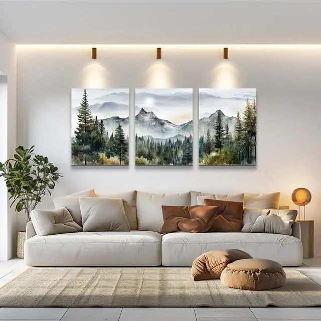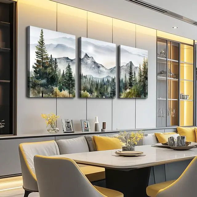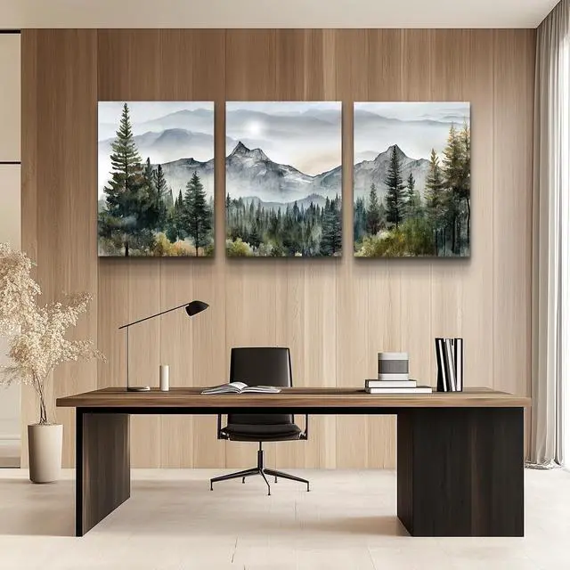 MHARTK66 Canvas Wall Art For Living Room-Wall Decorations For Office Bedroom Forest Trees Landscape Painting-Modern Home Decor Ready To Hang Wall Pictures 16"X24"X3 Panels