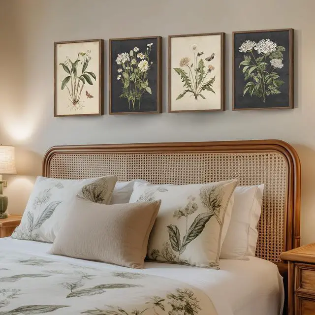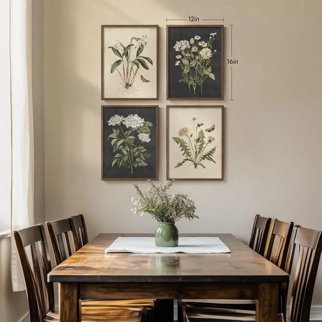 Framed Botanical Wall Art for Living Room, Set of 4 Rustic Flower Canvas Paintings ArtWork for Dining Room Walls, 4 Piece Vintage Minimalist Floral Neutral Prints for Farmhouse Hallway Bedroom Kitchen Bathroom Wall Decor
