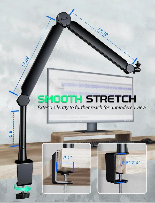 The extension tube with a 5.9 inches (150mm) height extends for adding the height of arm stand and allowing the mic stand to pass through the top of the monitor without obstructing the screen content and blocking the space.