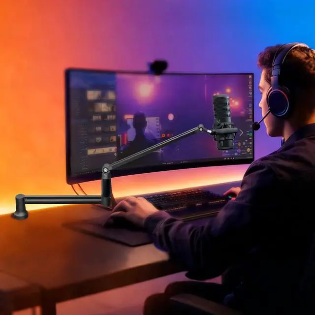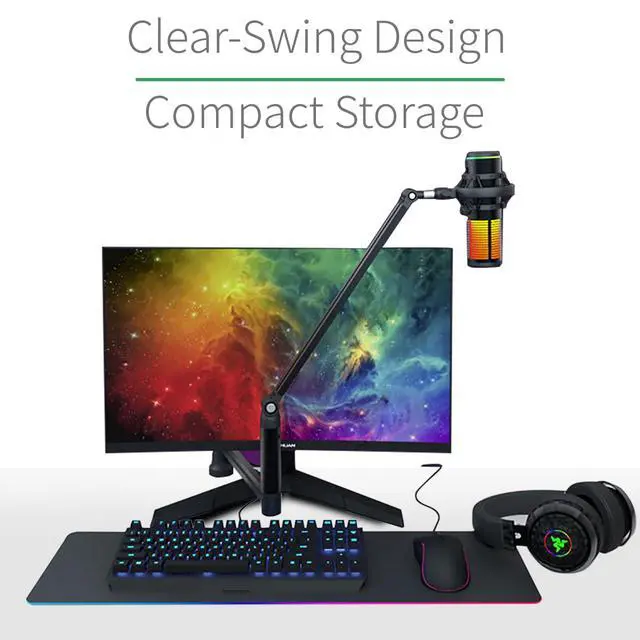 360° Rotatable Boom Arm for Perfect Positioning Easily adjust your microphone to any angle or height, ensuring optimal placement for gaming, streaming, podcasting, or recording.